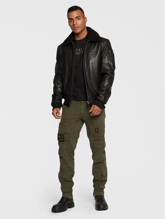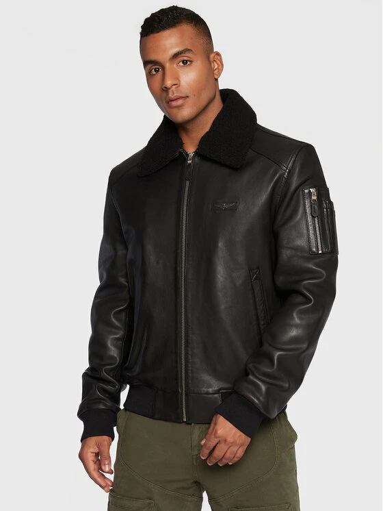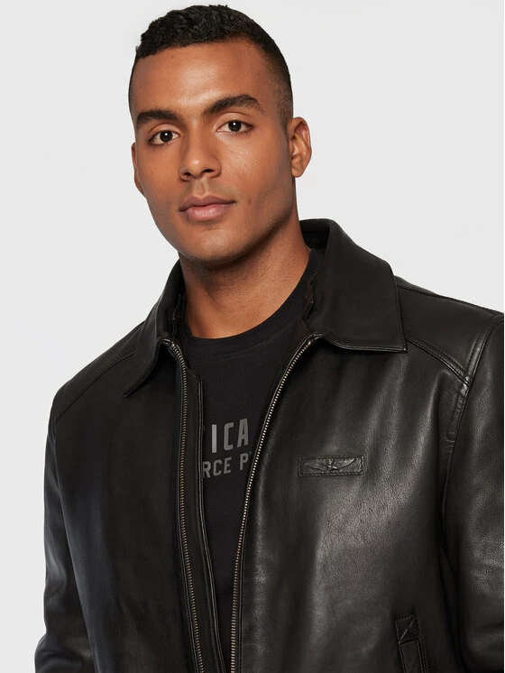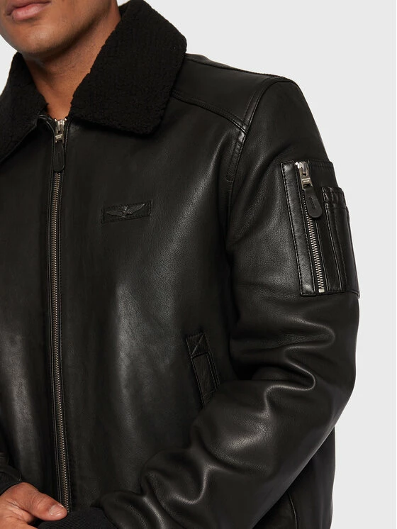 Best Pirce 🌟 Aeronautica Militare Άνδρες Δερμάτινα Μπουφάν Μπουφάν δερμάτινο 222PN927PL161 Μαύρο Regular Fit 🌟