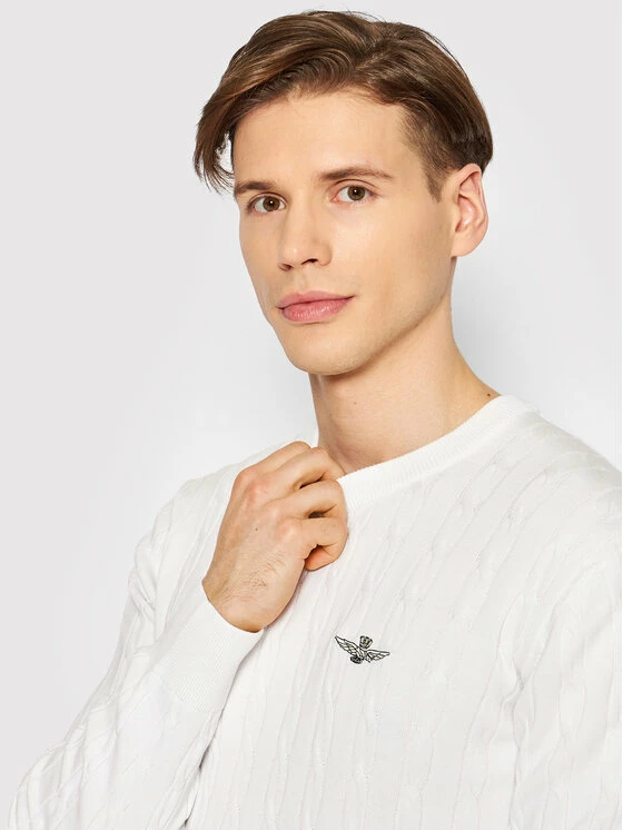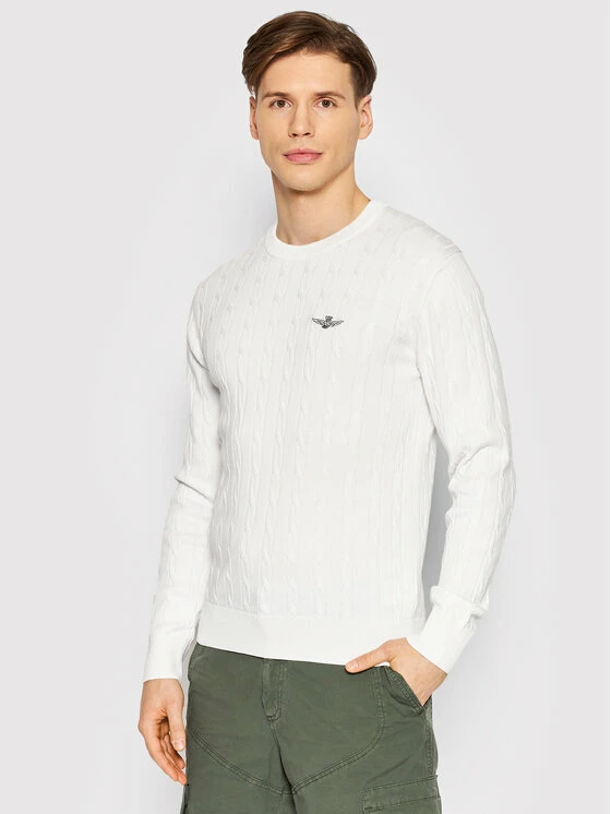 Ολοκαίνουργιο 🤩 Aeronautica Militare Άνδρες Πουλόβερ 221MA1376L462 Λευκό Regular Fit ✔️